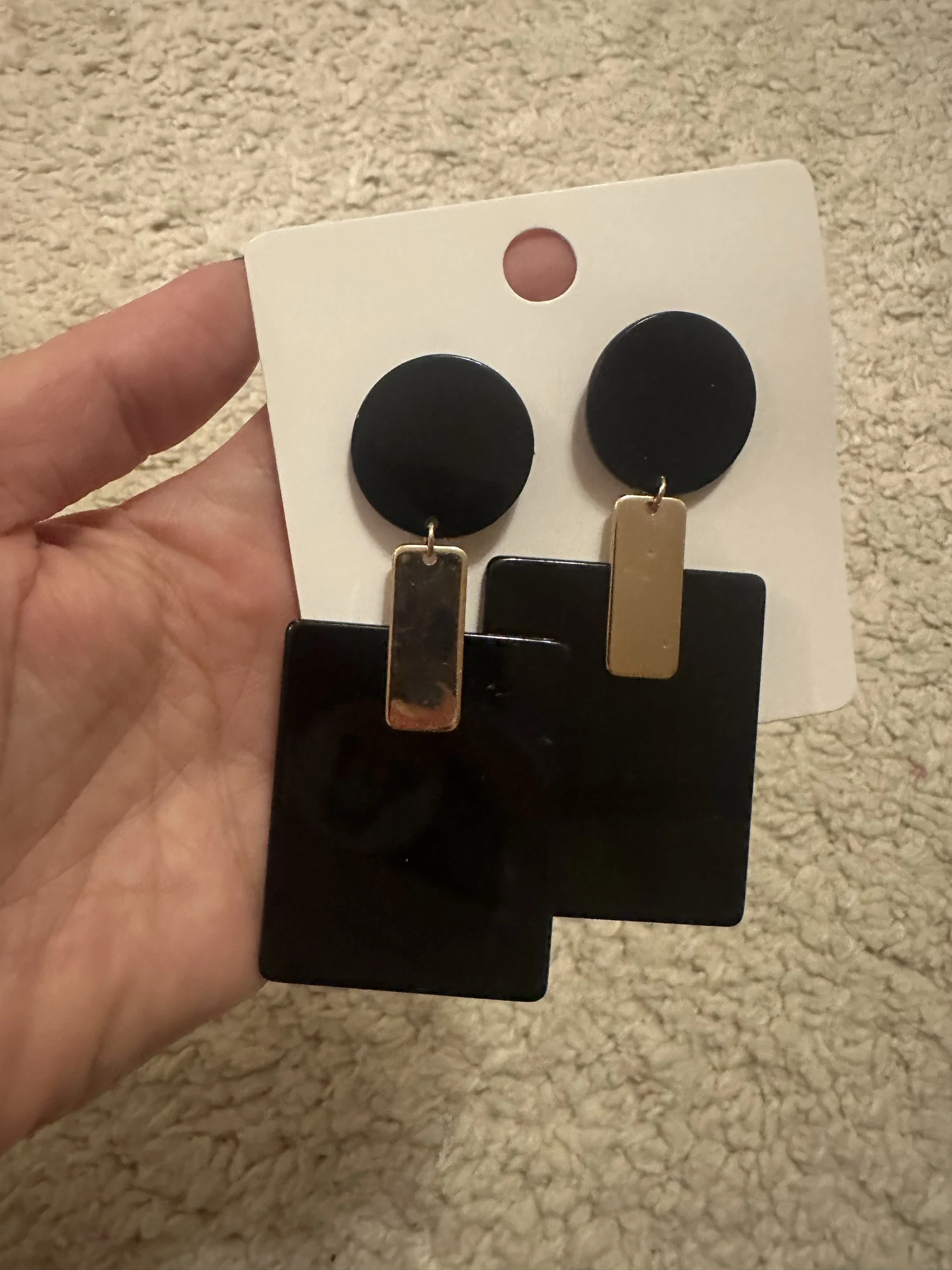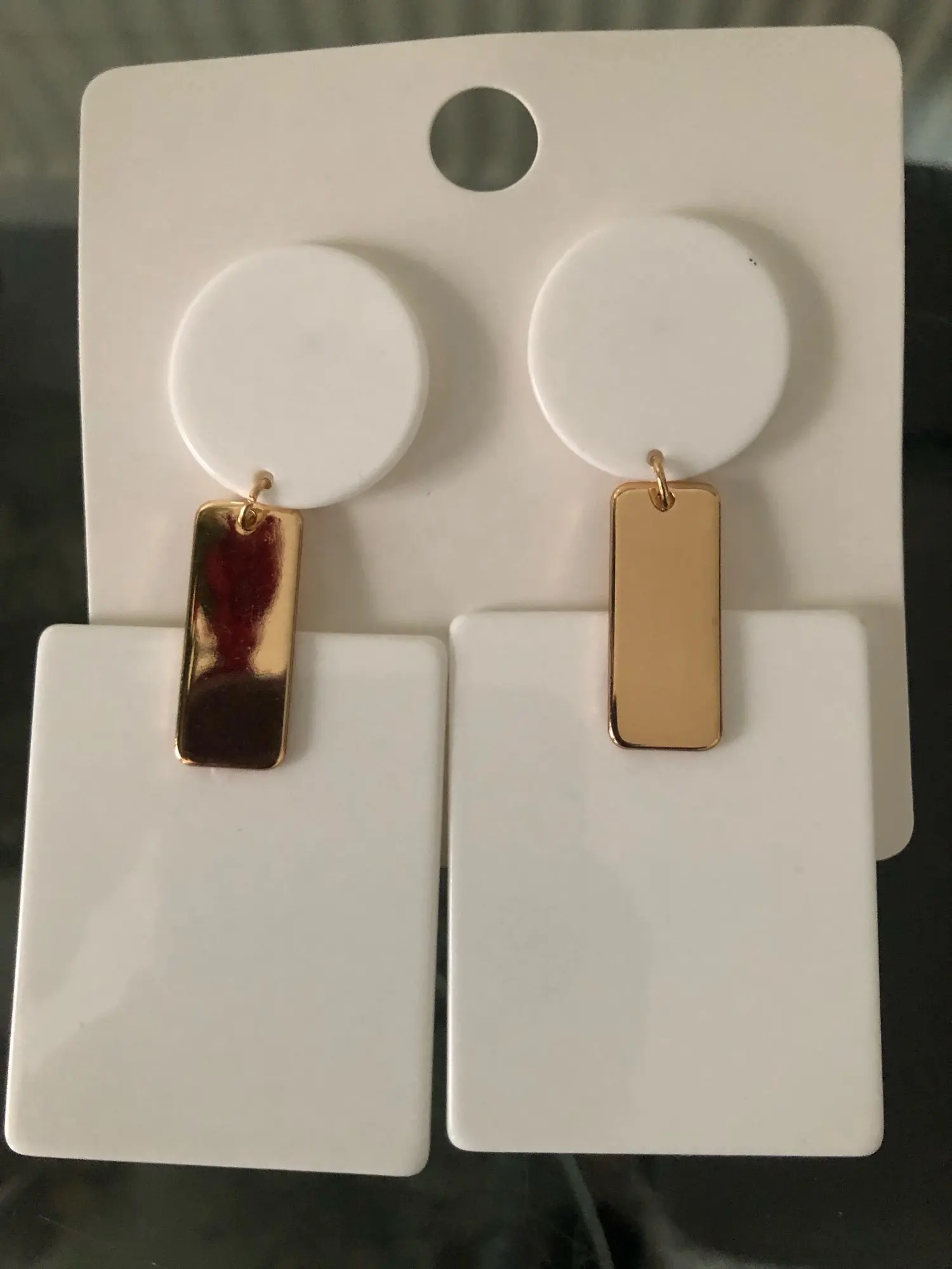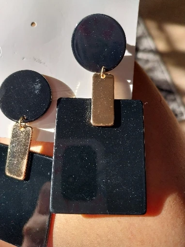 Evie Borer Fast delivery, very interesting earrings, for formal occasions. the earrings themselves are made of plastic, inlaid with metal inserts