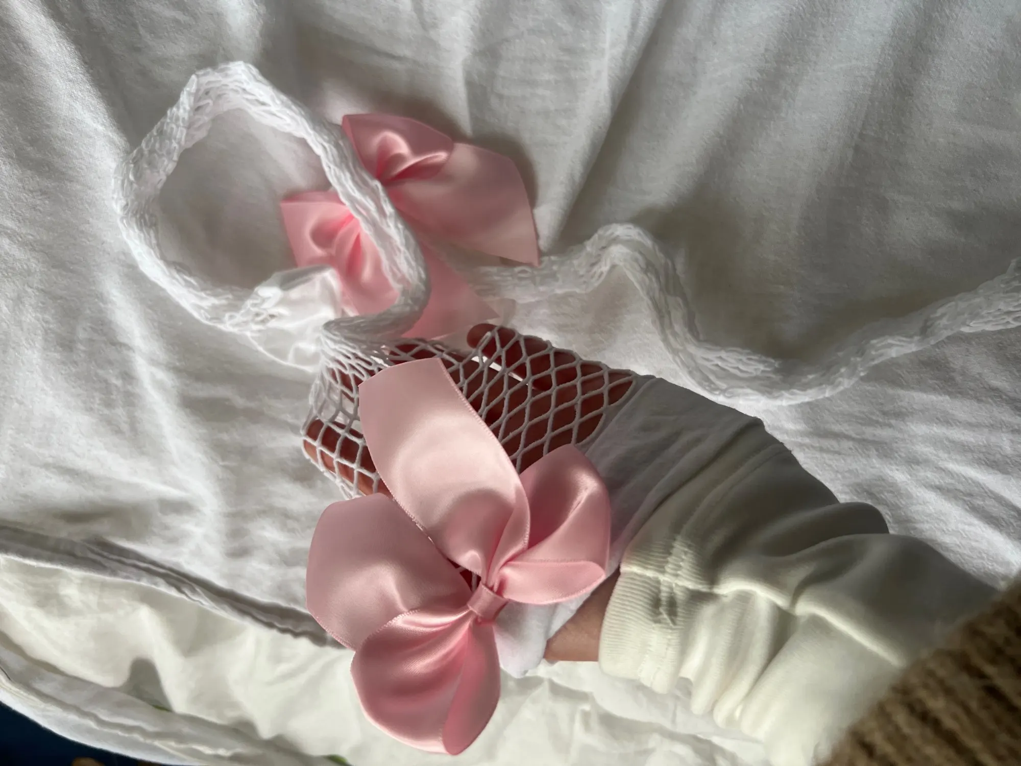 White Pink Bow Tie Pure desire Fishnet Stockings
